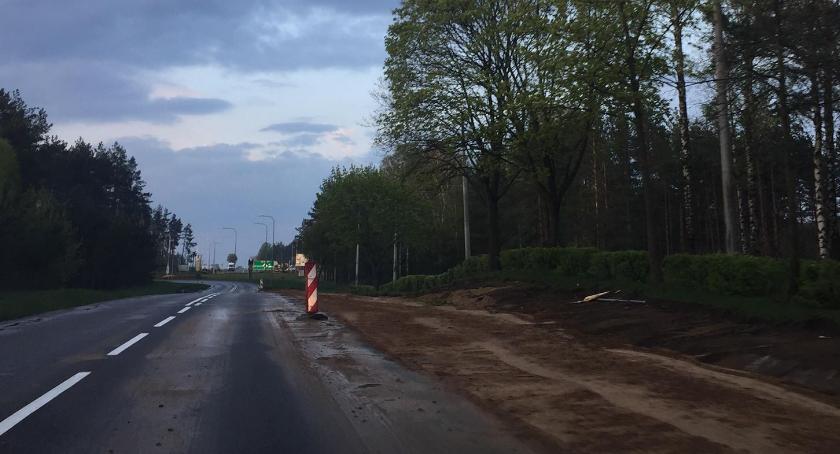 Kiedy jeszcze około dwóch tygodni temu jechaliśmy tą trasą, było wąsko i dało się zauważyć nieporządek. Szczególnie po deszczu było groźnie, bo mokry piasek z wodą wpływał na ulicę, przez co robiła się śliska. Ale to nie wszystko, bo na ulicę przesunęły się barierki biało-czerwone, które niekiedy trzeba było omijać slalomem. W dzień, kiedy jest widno, można manewrować. Jednak w nocy, widoczność jest mocno ograniczona. Wpaść na taką barierkę to chwila moment.