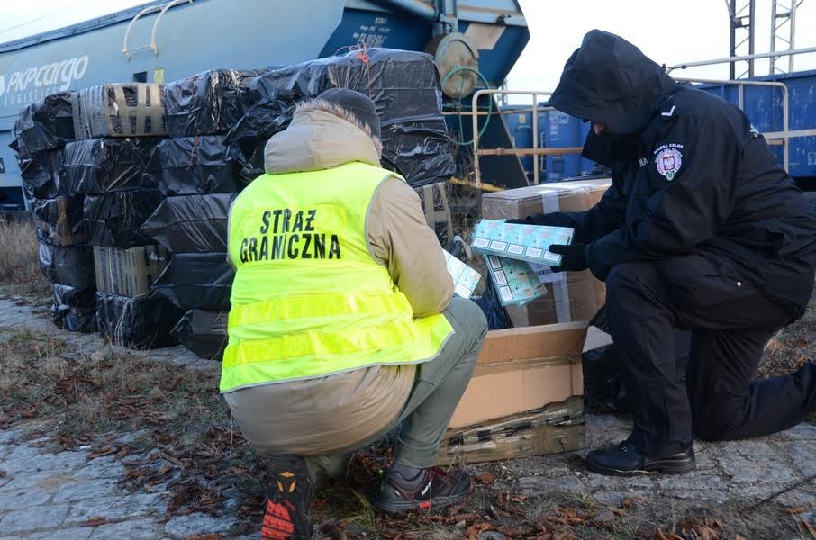 W sobotę 5 grudnia funkcjonariusze z Placówki SG w Kuźnicy oraz białostoccy celnicy szczegółowo skontrolowali pociąg towarowy, który przyjechał z Białorusi do Białegostoku. Podczas sprawdzania wagonów okazało się, że w jednym z nich pośród deklarowanego sypkiego nawozu sztucznego znajdują się czarne foliowe worki, a w nich papierosowa kontrabanda.