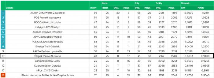 Ślepsk: Joaquin Gallego 12, Bartosz Filipiak 22, Kamil Droszyński 3, David Smith 13, Antoni Kwasigroch 16, Asparuh Asparuchow 17, Bartosz Mariański (libero), Jakub Kubacki (libero), Karol Jankiewicz, Jan Nowakowski.