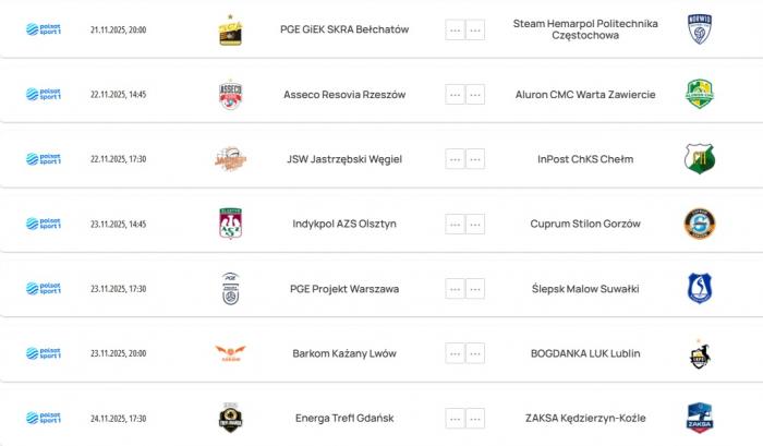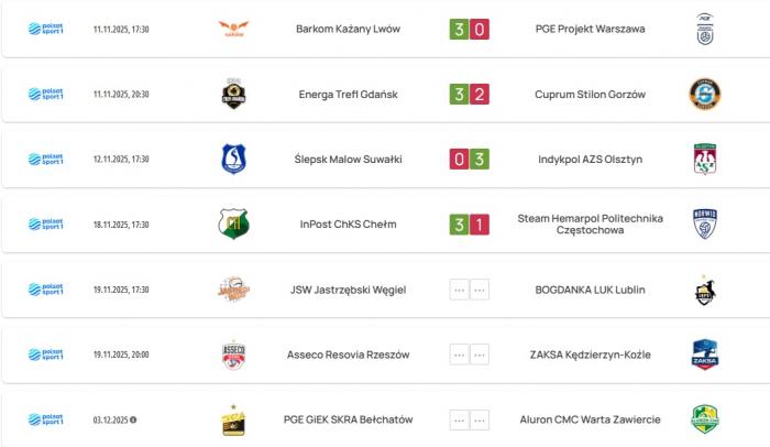 Pozostałe wyniki: Barkom Każany Lwów - PGE Projekt Warszawa 3:0, Energa Trefl Gdańsk - Cuprum Stilon Gorzów 3:2, Aluron CMC Warta Zawiercie - BOGDANKA LUK Lublin 3:2, Aluron CMC Warta Zawiercie - JSW Jastrzębski Węgiel 2:3, Steam Hemarpol Politechnika Częstochowa - Indykpol AZS Olsztyn 0:3, ZAKSA Kędzierzyn Koźle - Barkom Każany Lwów 3:2, BOGDANKA LUK Lublin - Asseco Resovia Rzeszów 2:3, InPost ChKS Chełm - PGE GiEK SKRA Bełchatów 0:3, PGE Projekt Warszawa - Energa Trefl Gdańsk 3:0, InPost ChKS Chełm - Steam Hemarpol Politechnika Częstochowa 3:1, Indykpol AZS Olsztyn - Aluron CMC Warta Zawiercie 2:3.