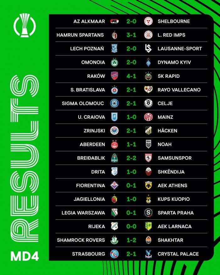 W czwartek pozostałe polskie drużyny grały ze zmiennym szczęściem: Lech pokonał w Poznaniu Lausanne-Sport 2:0, Raków Częstochowa rozgromił Rapid Wiedeń 4:1, a Legia Warszawa przegrała u siebie ze Spartą Praga 0:1. Najbliższy rywal żółto-czerwonych (Rayo Vallecano) uległ w Bratysławie Slovanowi 1:2, a AZ Alkmaar (ostatni rywal Jagi w Lidze Konferencji) pokonał Shelbourne 2:0.