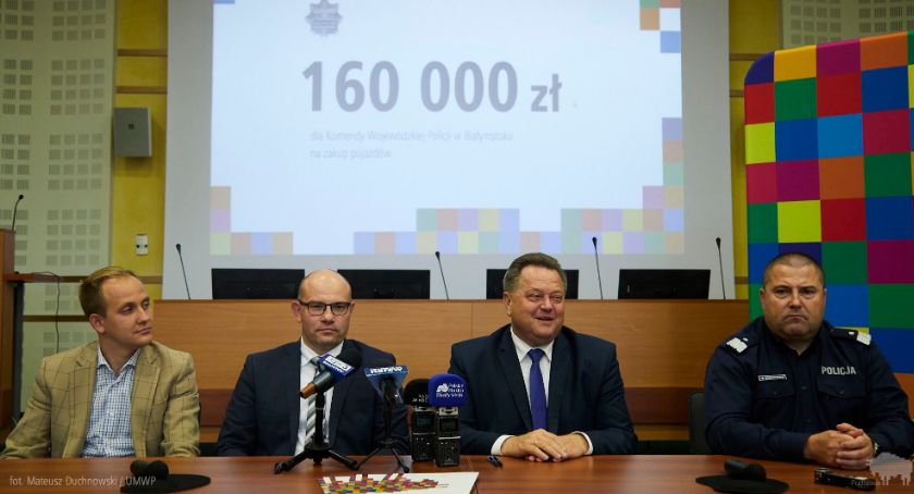 - To pierwszy przypadek, kiedy samorząd województwa podlaskiego wspiera Policję. To jest historyczny moment, że samorząd województwa postanowił się do tego dołączyć, do tego dołożyć i ja to chcę mocno podkreślić i za to podziękować. Pierwsze trzy samochody z nadzieją, że będą kolejne w przyszłych latach. Dziękuję panie marszałku – mówił podczas konferencji prasowej przed podpisaniem umowy wiceminister MSWiA Jarosław Zieliński – Obecny samorząd wnosi duży wkład we wspólne przedsięwzięcia służące bezpieczeństwu – dodał.