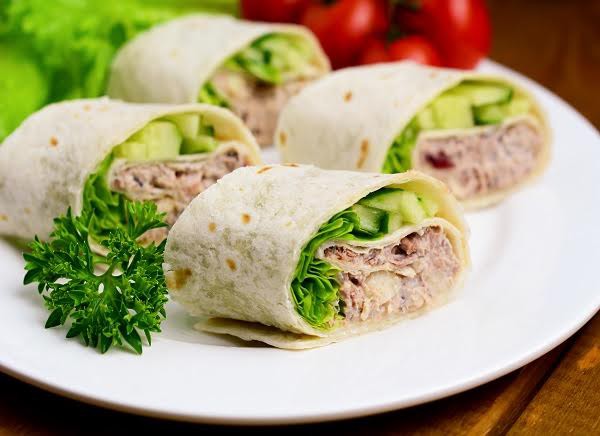 Tortillę smarujemy śmietankowym serkiem. Łososia kroimy w cienkie plastry, a ogórki w paski i układamy dodatki na placku. Posypujemy je koprem i przyprawami. Placek zawijamy w rulon i kroimy na mniejsze porcje.