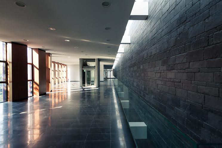 Najważniejszym elementem programu funkcjonalnego jest scena z pełnym wyposażeniem teatralnym i dwie widownie na 300 i 150 miejsc. Dźwiękoszczelne ściany mobilne umożliwiają dowolną aranżację tych wnętrz: łączenie sceny z dużą lub z małą widownią, czy połączenia sceny i obu widowni w układzie pół areny. Istnieje też możliwość wydzielenia samego pomieszczenia sceny i połączenia z holem wejściowym. W tej konfiguracji scena pełni funkcję przestrzeni wystawienniczej a widownie funkcję sal wykładowych. Akustyczne ekrany sufitowe zaprojektowano w nawiązaniu do zewnętrznej okładziny ściennej z perforowanej miedzianej blachy i miedzianej siatki cięto-ciągnionej.