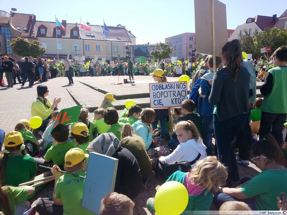 „Przechodź tylko na zielonym” – pod taką nazwą białostoccy i łomżyńscy policjanci zorganizowali przemarsz najmłodszych niechronionych uczestników ruchu drogowego. Przedsięwzięcie zrealizowano w ramach III Światowego Tygodnia Bezpieczeństwa Ruchu Drogowego ONZ.