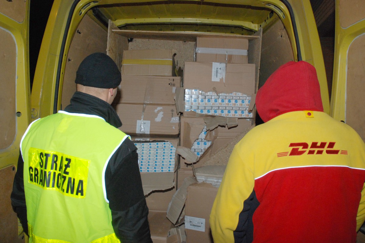 Funkcjonariusze Podlaskiego Oddziału Straży Granicznej z Placówki Straży Granicznej w Augustowie wspólnie z Wydziałem Zabezpieczenia Działań, ujawnili wczoraj w Raczkach papierosy bez polskich znaków akcyzy o łącznej wartości ok. 327 tys. zł. Kontrabandę przewożono w samochodzie z logo DHL, próbując w ten sposób wykorzystać go jako przykrywkę.