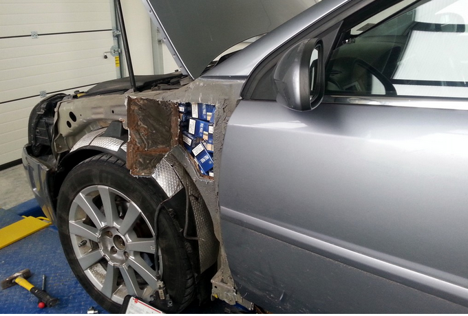 O wiele więcej nielegalnych papierosów celnicy z Budziska znaleźli jednak w przerobionej naczepie polskiego tira, który wracał z Rosji bez ładunku. W przedniej ściance naczepy funkcjonariusze odkryli skrytkę, a w niej 14 tysięcy paczek papierosów z białoruskimi znakami akcyzy.