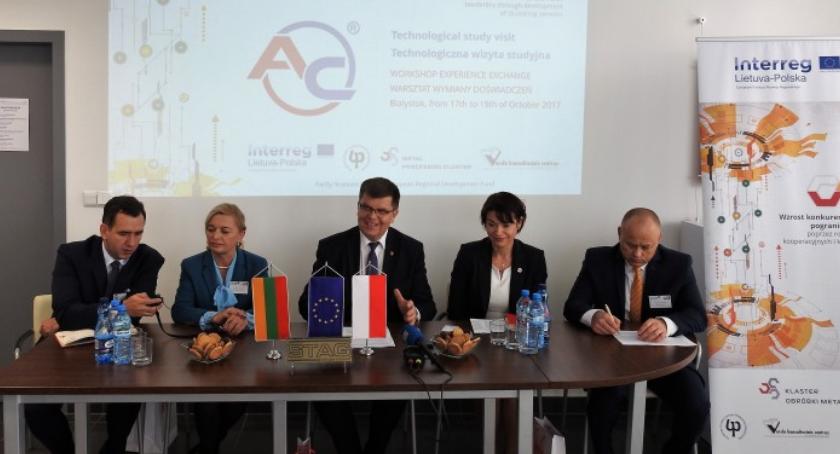 Kto podejmie się tego zadania, dowiemy się pewnie w najbliższym czasie. Ważne, by była to osoba, która zna potrzeby podlaskiego biznesu i zdaje sobie sprawę, w jakich wydarzeniach będzie uczestniczyła. Jerzy Leszczyński miał z tym problemy, co nie przeszkadzało mu w żaden sposób, by pokazywać się wśród przedsiębiorców w obecności mediów. Tak było w październiku 2017. W siedzibie spółki AC SA zorganizowana została konferencja prasowa (na zdjęciu). Miała ona związek z wizytą litewskich przedsiębiorców w Białymstoku. Podsumowano wtedy projekt "Wzrost konkurencyjności pogranicza PL-LT poprzez rozwój usług kooperacyjnych i klastrowych", w ramach którego odbył się m.in. cykl praktycznych szkoleń interpersonalnych i technicznych Akademia Klastra, który objął 120 osób: pracowników firm zrzeszonych w Klastrze Obróbki Metali. Analogiczny program rozwojowy dla podobnej grupy przeprowadził partner litewski.