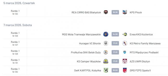 Wyniki 21. kolejki: Enea KKS Kozienice - Kartpol Kobyłka 1:3, Metro Warszawa - SKK Belsk Duży 0:3, SMS PZPS II Spała - Camper Wyszków 0:3, KPS Płock - Huragan Błonie 3:0, MTS Międzyrzec Podlaski - MOS Wola Warszawa 3:1, Huragan Wołomin - MOS Wola Warszawa 3:1.