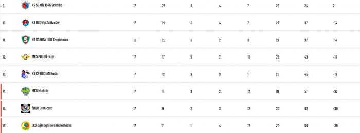 15.00 - Ruch Wysokie Mazowieckie – Sparta Augustów