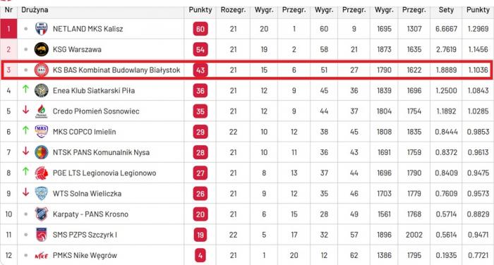 Pozostałe wyniki: Enea KS Piła - PMKS Nike Węgrów 3:0, KSG Warszawa - NTSK PANS Komunalnik Piła 3:0, MKS COPCO Imielin - NETLAND MKS Kalisz 0:3, WTS Solna Wieliczka - Credo Płomień Sosnowiec 3:2, Karpaty-PANS Krosno - PGE LTS Legionovia Legionowo 1:3.