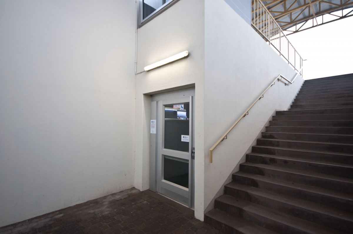 Większą ciekawostką jest brak rynien na rowery, ponieważ windą przewozić ich nie można. O tym informuje wyraźnie naklejka na windzie.