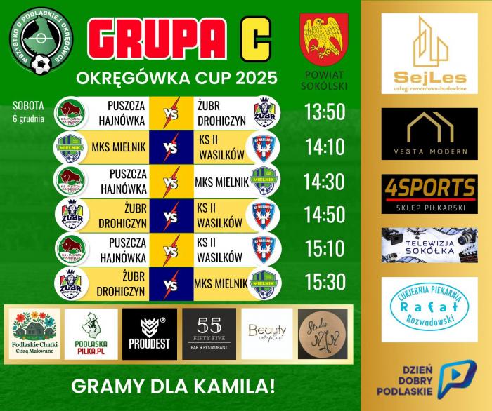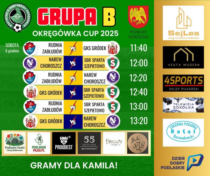 Kamil potrzebuje wsparcia, bo Jego rehabilitacja jest kosztowna. Zbiórka rozpoczęła się jakiś czas temu. Kamil i jego przyjaciele mobilizują piłkarską społeczność (i nie tylko) do pomocy w uzbieraniu potrzebnej kwoty. A brakuje ciągle sporo. Wierzmy, że jesteśmy w stanie pomóc potrzebującemu - oto link do zbiórki https://www.siepomaga.pl/kamil-maksimczyk . Jeżeli każdy z odwiedzających zechce wesprzeć zbiórkę choćby symboliczną kwotą 10 zł to z pewnością starczy na zakup sprzętu ortopedycznego oraz kompleksową rehabilitację Kamila. Gorąco zachęcamy do wsparcia - nasze redakcja również dołączyła do pomocy dla Kamila tak jak i WSZYSTKIE ekipy ligi okręgowej. Turniej odbywa się pod patronatem starosty sokólskiego Piotra Rećki.