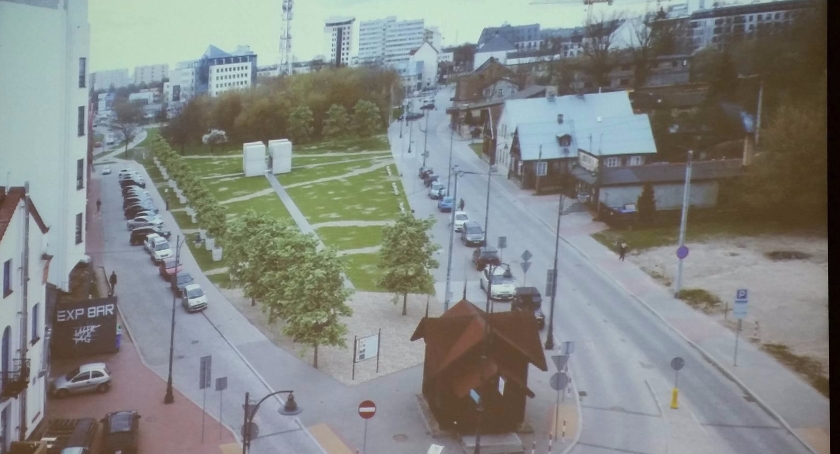Jak widać, bliżej ulicy Legionowej, czyli od strony zabudowy, mają się pojawić drzewa doniczkowe. Równolegle po drugiej stronie, kilka drzew ma już zostać posadzonych normalnie. Wewnątrz znajdzie się monument z alejkami, którymi będzie można przejść przez środek pomnika. Zaś w jego wnętrzu zobaczyć będzie można stare fotografie i grafiki. Podłoże ma w większości zostać takie, jakie jest. Czyli kocie łby, które dziś porastają trawą. I to wszystko ma kosztować około 500 tysięcy złotych.