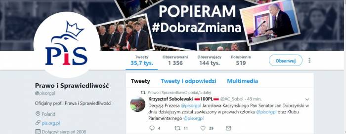 Tę informację udostępniła także na swoim profilu społecznościowym posłanka Prawa i Sprawiedliwości Anna Sobecka oraz Jacek Ozdoba, warszawski samorządowiec, sekretarz klubu w dzielnicy Mokotów. Podlaskie struktury partii na razie milczą w tej sprawie i nie podają żadnych informacji. Ale z drugiej strony, jeśli taką decyzję podjął prezes partii, to w zasadzie nic innego byśmy się nie dowiedzieli od lokalnych polityków. Poza tym i tak w większości są dziś w Warszawie, bo trwają posiedzenia Sejmu.