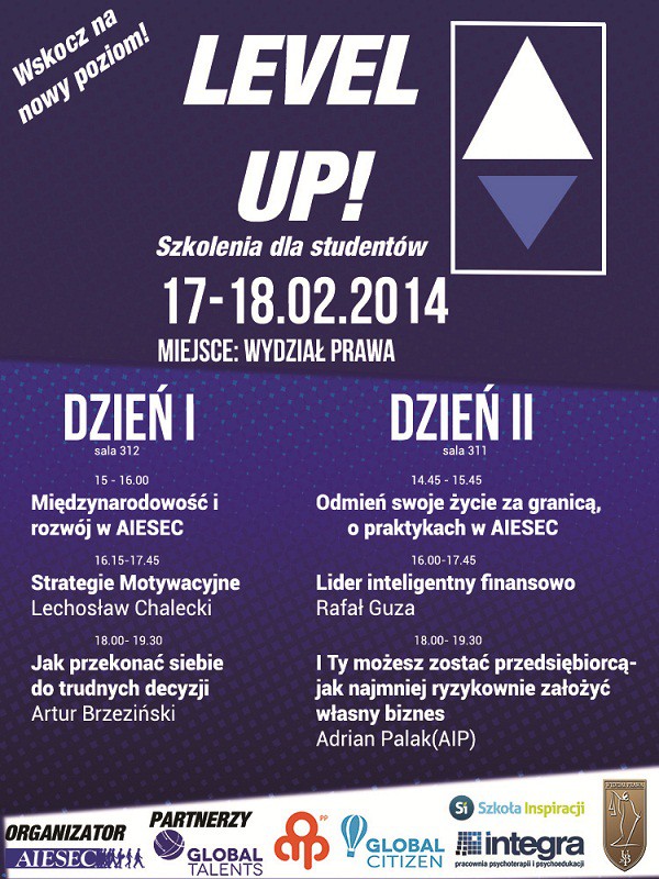 Już wkrótce studenci białostockich uczelni będą mogli wziąć udział w cyklu ciekawych szkoleń. Wszystko za sprawą projektu Level Up, organizowanego przez AIESEC.