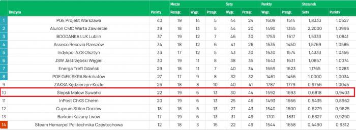 Zupełnie inaczej wygląda sytuacja w kontekście walki o czołową ósemkę i fazę play-off. Punkt zdobyty z Projektem jest cenny, ale w kontekście goniących nas rywali, może okazać się niewystarczający. Aby wskoczyć do ósemki, Ślepsk musi zacząć regularnie punktować z drużynami z bezpośredniego sąsiedztwa w tabeli. Problemem pozostaje stabilizacja – suwalczanie potrafią zagrać genialny set z liderem, by w kolejnym popełniać seryjne błędy w przyjęciu. Jeśli uda się wyeliminować te przestoje, awans do play-off jest w zasięgu ręki.