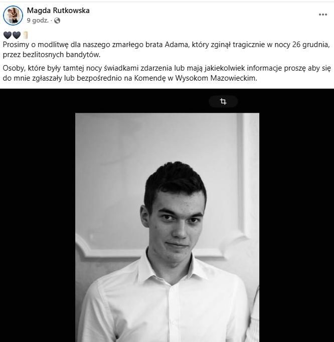 4. Bezpośredni apel rodziny. Siostra zmarłego Adama, Magda, prosi o kontakt poprzez media społecznościowe lub bezpośrednio z policją. Przekazanie nagrania rodzinie może pomóc ich pełnomocnikowi w dostarczeniu dowodów bezpośrednio do akt sprawy w prokuraturze.