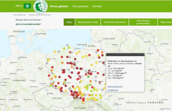Identycznie jest w sprawie smogu, który dziś od rana wisi nad Białymstokiem. Jeszcze wczoraj powietrze nie było najlepszej jakości. Stężenie substancji szkodliwych było przekroczone, a dziś jest przekroczone bardzo mocno. Na portalu http://powietrze.gios.gov.pl/, na którym można sprawdzać jakość powietrza, od rana można było przeczytać o przekroczeniu norm i dopuszczalnych wskaźników.