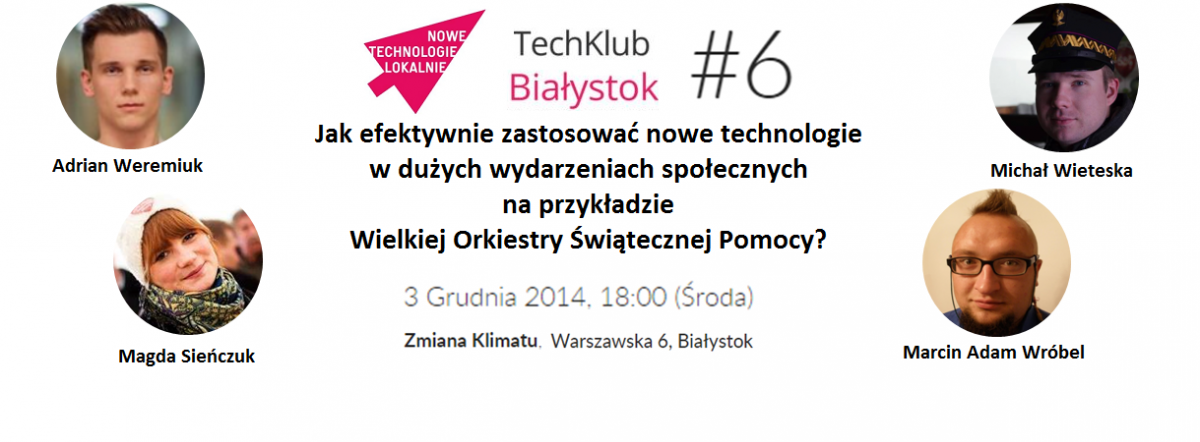 W imieniu organizatorów zapraszamy na kolejne, bo już szóste spotkanie Techklubu Białystok. Techklub to spotkania przedstawicieli DWU światów: III sektora (organizacje pozarządowe) oraz branży IT.