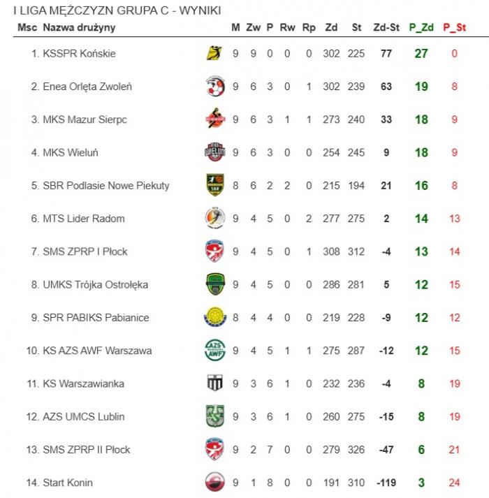 Wyniki 9. kolejki: SMS ZRPR II Płock - AZS UMCS Lublin 32:40, SMS ZPRP I Płock - KS AZS AWF Warszawa 36:33, KS Warszawianka Warszawa - MKS Mazur Sierpc 31:25, MKS Wieluń - Enea Orlęta Zwoleń 23:22, KSSSPR Końskie - SPR PABIAKS Pabianice 35:19, MTS Lider Radom - UKS Trójka Ostrołęka 29:34.