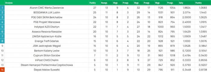 Wyniki 10. kolejki: InPost ChKS Chełm - Energa Trefl Sopot 0:3, Steam Hemarpol Politechnika Częstochowa - PGE Projekt Warszawa 0:3, JSW Jastrzębski Węgiel - Asseco Resovia Rzeszów 3:0, BOGDANKA LUK Lublin - Indykpol AZS Olsztyn 3:0, ZAKSA Kędzierzyn-Koźle - Cuprum Stilon Gorzów 3:1, PGE GiEK SKRA Bełchatów - Barkom Każany Lwów 3:1.