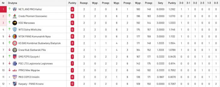Pozostałe wyniki 2 kolejki: SMS PZPS Szczyrk - NTSK PANS Komunalnik Bysa 2:3, MKS COPCO Imielin - Credo Płomień Sosnowiec 1:3, WTS Solna Wieliczka - Karpaty-PANS Krosno 3:0, KSG Warszawa - PGE LTS Legionovia Legionowo 3:0, NETLAND MKS Kalisz - Enea Klub Siatkarski Piła 3:1.