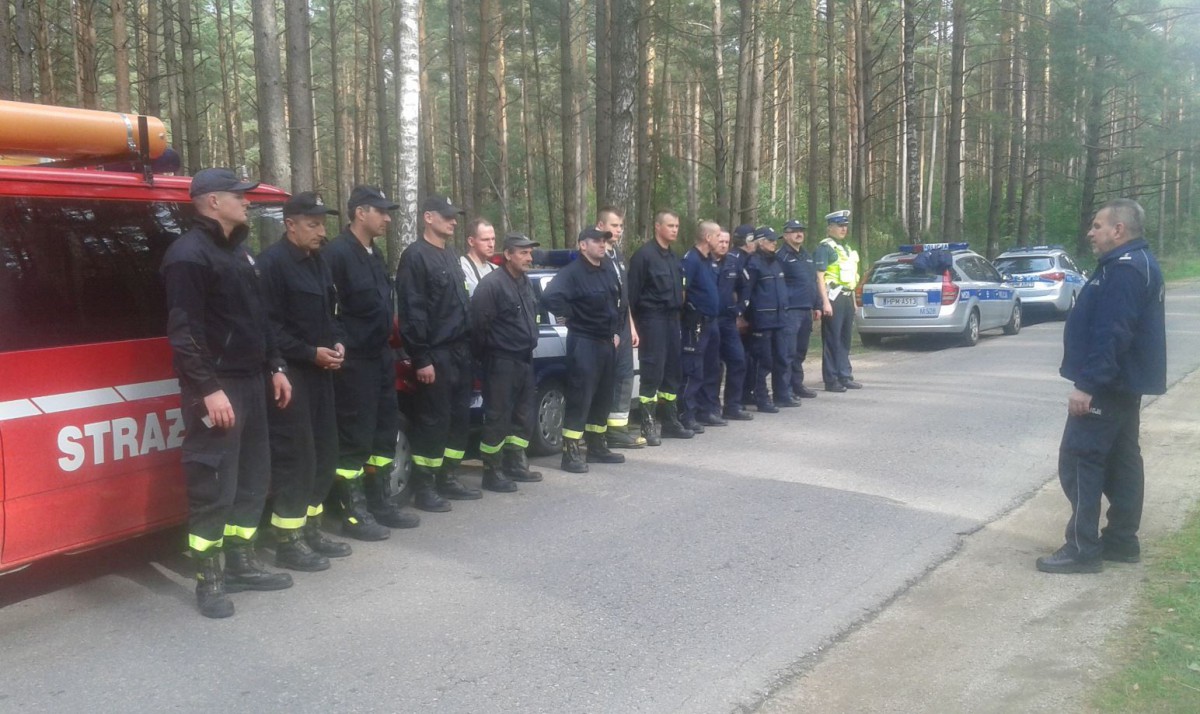 Natychmiast rozpoczęto akcję poszukiwawczą, w której udział wzięli policjanci z grajewskiej komendy w tym także przewodnik z psem służbowym oraz strażacy z Państwowej Straży Pożarnej w Grajewie, Ochotniczej Straży Pożarnej w Rajgrodzie oraz Mieczach. Do poszukiwań włączyli się również strażnicy leśni. Przez blisko 2 godziny strażacy i policjanci przeczesywali krok po kroku teren leśny.