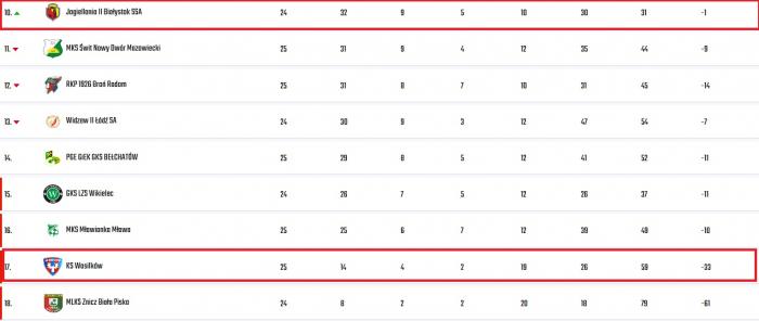 Na 3:0 podwyższył Kosmalski, finalizując dogranie Szymona Pankiewicza, a dzieła zniszczenia dopełnił Olaf Pawelczyk. Czwarta bramka padła po kolejnym modelowym przechwycie i błyskawicznym przejściu z bloku niskiego do ataku, co stało się znakiem rozpoznawczym białostoczan w tym spotkaniu. Efektowna wygrana w Płocku dała rezerwom Jagiellonii kolejne punkty na koncie (jest ich już 32). Obecnie żółto-czerwoni zajmują 10. miejsce w ligowej tabeli, co daje im bezpieczną - sześciopunktową - przewagę nad strefą spadkową.