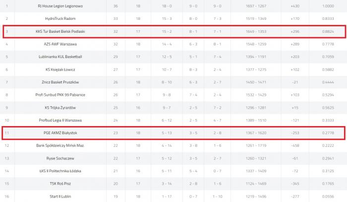 Pozostałe wyniki 18. kolejki: HydroTruck Radom - Start II Lublin 76:65, Bank Spółdzielczy Mińsk Mazowiecki - TSK Roś Pisz 91:101, RJ House Legion Legionowo - KKS Tur Basket Bielsk Podlaski 100:88, Lubliniana KUL Basketball - Profbud Legia II Warszawa 91:68, KS Trójka Żyrardów - KS Księżak Łowicz, Rysie Sochaczew - ŁKS II Politechnika Łódzka.
