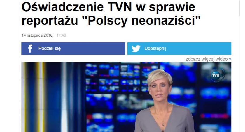 „Portal internetowy "wPolityce.pl" oraz tygodnik "Sieci" opublikowały zarzuty skierowane w stronę autorów reportażu "Polscy neonaziści", w którym pokazana była uroczystość obchodów urodzin Adolfa Hitlera w lesie w okolicach Wodzisławia Śląskiego w 2017 roku. Odrzucamy wszelkie zarzuty zawarte w tych publikacjach, a w szczególności ten, że telewizja TVN zapłaciła osobom trzecim za zorganizowanie tego wydarzenia. Oskarżenia te są całkowicie niezgodne z prawdą, co wykaże postępowanie przed sądem. Publikacja tej fałszywej informacji jest zniesławiająca i narusza prawa osobiste dziennikarzy oraz prawa TVN, dlatego do sądu zostanie wniesiony odpowiedni pozew” – czytamy w oświadczeniu zamieszczonym na stronie internetowej tvn24.pl.