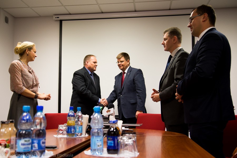 Zarząd województwa podlaskiego podzielił kompetencje pomiędzy swoich członków. Marszałek Jerzy Leszczyński nowy zarząd, wybrany podczas poniedziałkowej sesji sejmiku, przedstawił dziennikarzom we wtorek na pospiesznie zwołanej konferencji prasowej. Wtedy też ustępujący marszałek Mieczysław Baszko symbolicznie przekazał władzę Leszczyńskiemu.