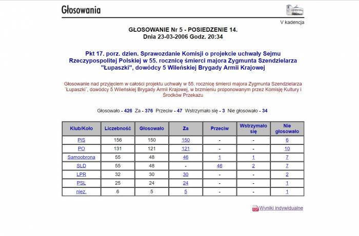 „Oddział majora „Łupaszki” prowadził krwawe walki z wojskami hitlerowskimi oraz z sowiecką partyzantką terroryzującą Polaków. W czasie tych działań major Zygmunt Szendzielarz zdobył sobie zaszczytną opinię znakomitego dowódcy” – czytamy w uzasadnieniu uchwały. – „Sejm Rzeczypospolitej Polskiej, czcząc Ich pamięć, stwierdza, że Żołnierze Wyklęci dobrze zasłużyli się Ojczyźnie” – kończy się uzasadnienie uchwały Sejmu przyjętej w 55. rocznicę śmierci Zygmunta Szendzielarza Łupaszki, za której brzmieniem głosowali wszyscy obecni na posiedzeniu posłowie Platformy Obywatelskiej oraz Prawa i Sprawiedliwości.