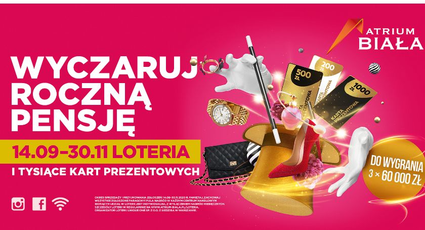 Tegoroczne, jesienne zakupy w Atrium Biała to dla klientów centrum nie tylko okazja do miłego spędzenia czasu, ale też szansa na wygranie wielu atrakcyjnych nagród. Każdy zarejestrowany w loterii paragon to możliwość natychmiastowej wygranej, a także szansa na zdobycie rocznej pensji – czyli 60 tysięcy złotych!
