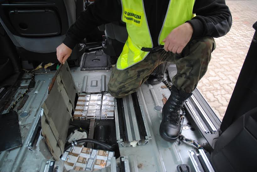 W trakcie sprawdzania Citroena C8 okazało się, że w podwójnej podłodze samochodu ukrytych jest ponad 4 tys. zł. paczek nielegalnych papierosów. Szacunkowa wartość kontrabandy to blisko 54 tys. zł.