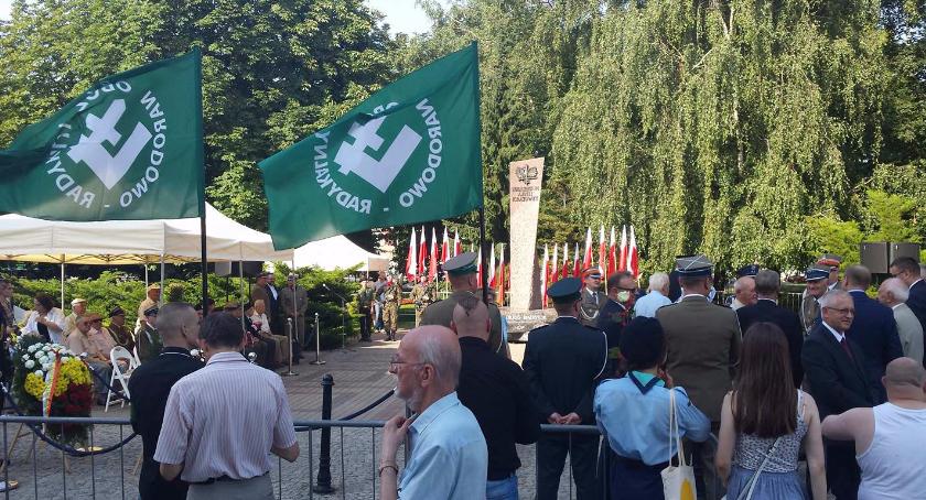 Oprócz flag ONR-u, był na miejscu sztandar Solidarności i oczywiście flagi biało-czerwone, z którymi przyszli także mieszkańcy. Żadna z nich nie została schowana, ani zwinięta. I choć nie padło publicznie, które flagi powinny być schowane, zgromadzeni wiedzieli, że prezydentowi nie podobają się flagi ONR-u. Nawet głos kombatantów, którzy dziwili się, w czym przeszkadzają flagi podczas uroczystości, nie skłonił prezydenta do zmiany nastawienia. Stał ze swoim synem, posłem Nowoczesnej, z boku, nieco dalej od miejsca zgromadzenia.