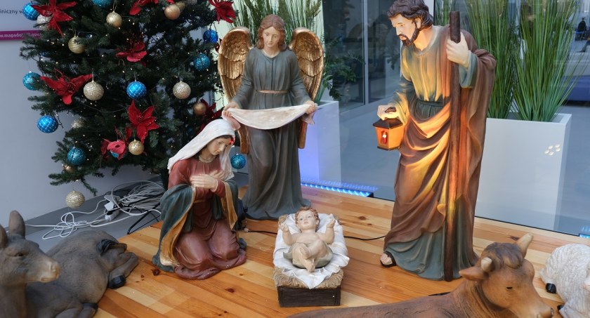 Obok wejścia, w holu Uniwersyteckiego Szpitala Klinicznego w Białymstoku, stanęła dziś szopka Bożonarodzeniowa. To miejsce każdego dnia mijają pracownicy, tędy przechodzą pacjenci kierujący się na SOR, czy rodziny pacjentów, które przynoszą rzeczy i zostawiają swoim najbliższym (obecnie w szpitalu nie ma odwiedzin).