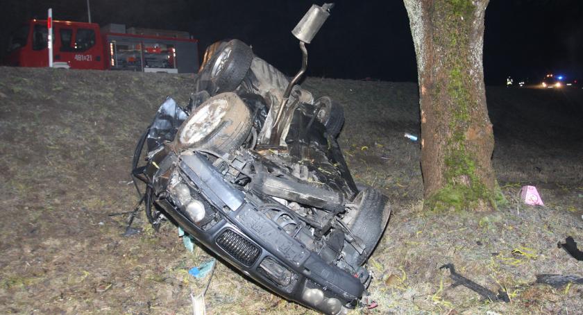 Pojazd osobowy marki BMW uderzył w rosnące w przydrożnym rowie drzewo. W wyniku odniesionych obrażeń śmierć poniósł jeden z pasażerów pojazdu.