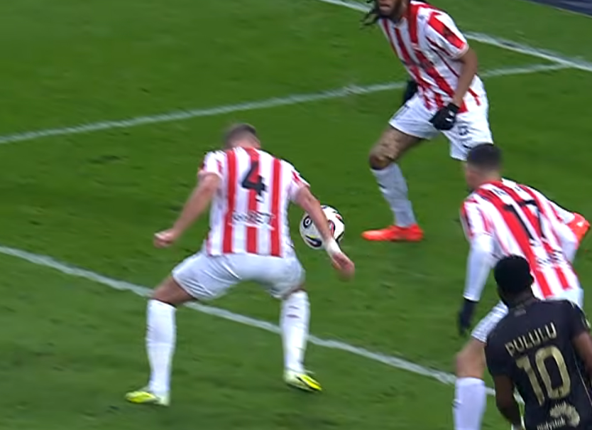 Najsłabszym aktorem tego meczu był chyba jednak sędzia. Piotr Lasyk z Bytomia mylił się często w obie strony. W 27 minucie oszczędził Andy Pelmarda po raz pierwszy (nasz stoper kilka minut wcześniej dostał żółty kartonik za bezmyślne odkopnięcie piłki poza boiskiem), gdy ten przerwał faulem rozpoczynającą się szybką kontrę Cracovii. Arbiter mógł wyjąć kartkę, ale uznał, że faul popełniony pod polem karnym rywali to jeszcze nie przerwanie korzystnej akcji - kontrowersyjne, ale do przyjęcia. Bardziej oczywista była sytuacja w 31. minucie. Po dośrodkowaniu Nahuela Leivy z rzutu wolnego, Bernardo Vital zgrał piłkę głową na szósty metr. Tam futbolówka ewidentnie trafiła w rękę Gustava Henrikssona. Powtórki pokazały, że ręka Szweda nienaturalnie powiększyła obrys ciała (odsunięta od ciała uniemożliwiła piłce przejście za tego gracza). Wydawało się, że rzut karny jest formalnością, jednak sędzia Piotr Lasyk oraz wóz VAR (duet Szczech – Kaliszewski) uznali, że „jedenastki” nie będzie.