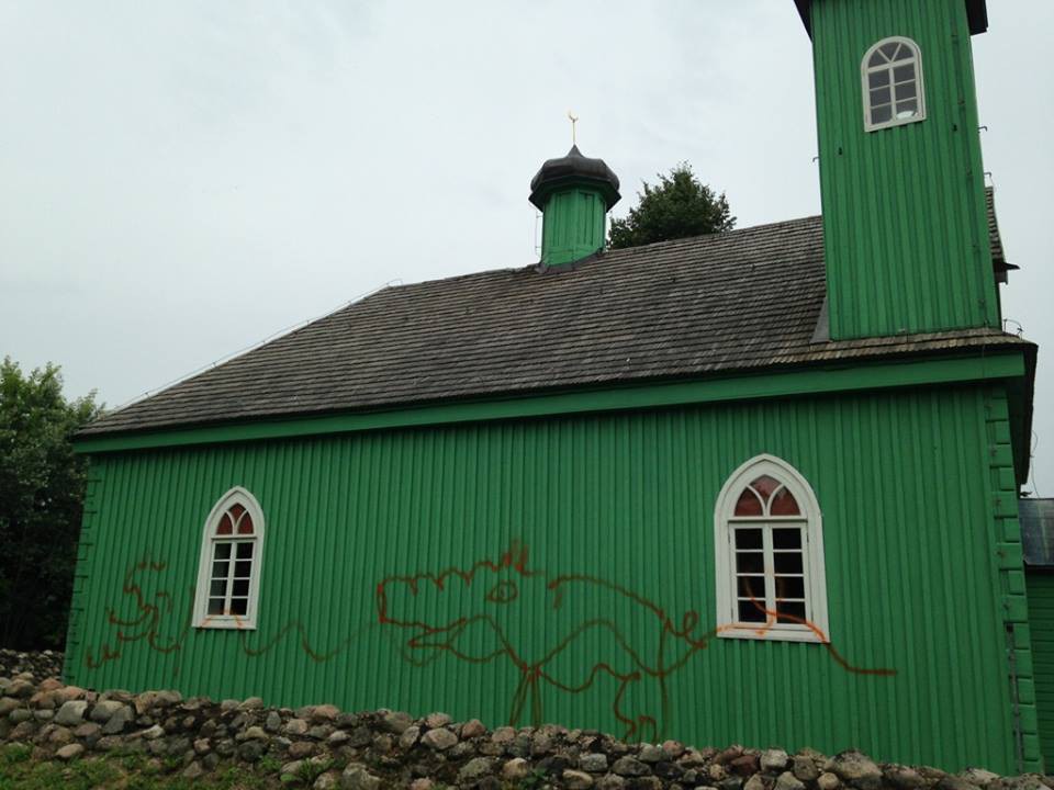 Dziś rano mieszkańcy Kruszynian zobaczyli taki widok swojego meczetu widoczny na zdjęciu. W nocy wandale pomalowali zabytkową budowlę. Ponadto zniszczyli także kilka innych obiektów.