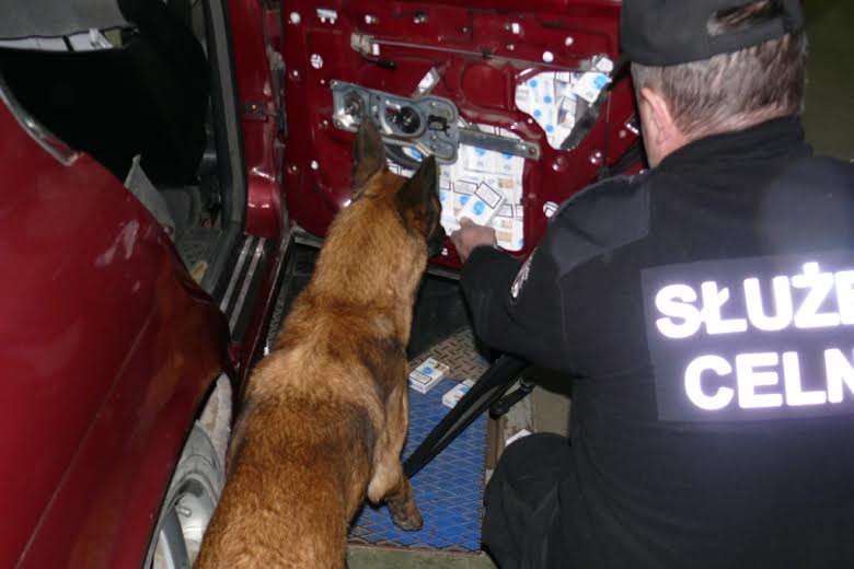 Podczas rewizji, w której uczestniczyła Iga – owczarek belgijski wyszkolony do wykrywania papierosów – okazało się, że cały samochód naszpikowany jest tytoniową kontrabandą. Nielegalny towar o wartości ponad 35 tys. złotych ukryty był m.in. w butli na gaz, kanapie, kole zapasowym, progach oraz w drzwiach pojazdu.