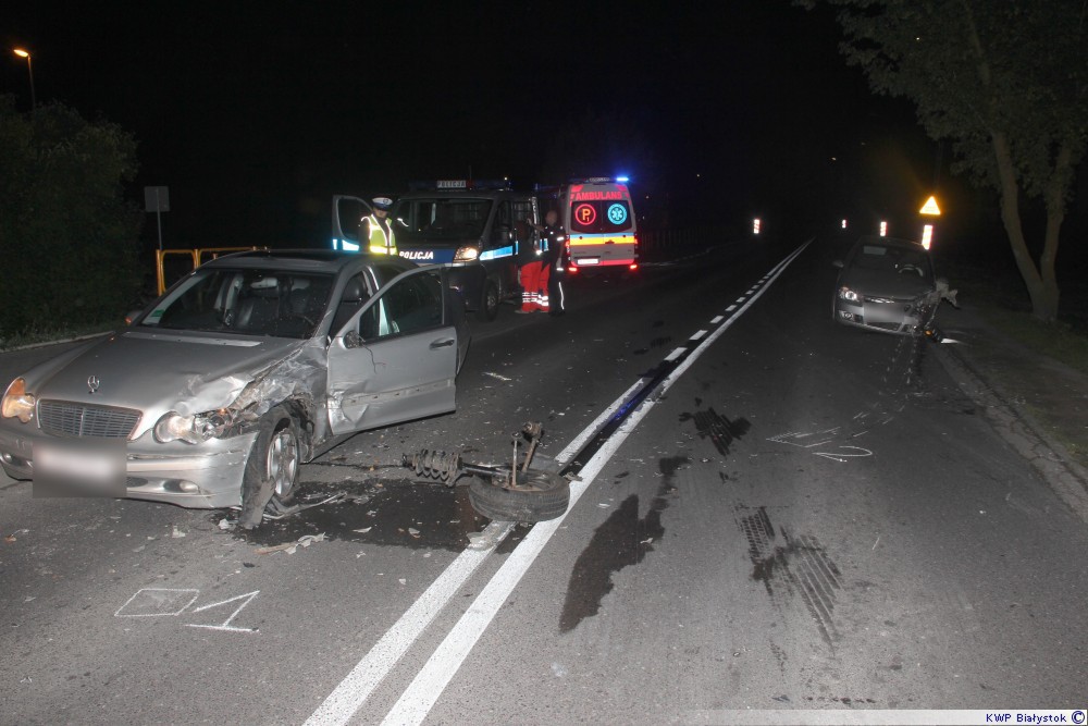 Niestety nie był to ostatni weekendowy wypadek. Jeszcze tej samej nocy (z soboty na niedzielę) kilka minut przed godziną 3 policjanci otrzymali sygnał o kolejnym. W Mońkach na skrzyżowaniu ulicy Słowackiego z ul. Reja i Aleją Wojska Polskiego 25-letnia kobieta podróżując za kierownicą bmw nie ustąpiła pierwszeństwa przejazdu passatowi. W wyniku zderzenia pojazdów obrażeń ciała doznał pasażer vw. 22-letni mężczyzna z podejrzeniem złamania 2 żeber został odwieziony do szpitala. Na szczęście pozostali pasażerowie obu aut wyszli z tego zdarzenia bez szwanku.
