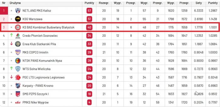 Zwycięstwo w Imielinie, w połączeniu z porażką KS-u Piła ostatecznie wyjaśniło sytuację w ligowej tabeli. Niezależnie od wyników ostatniej kolejki, BAS KB Białystok zajmie 3. miejsce na koniec fazy zasadniczej. To ogromny sukces i strategiczna przewaga przed decydującą fazą sezonu. Oznacza to, że w pierwszej rundzie play-off nasze siatkarki zmierzą się z zespołem z szóstego miejsca, a co najważniejsze – będą miały atut własnego boiska w przypadku decydujących starć.