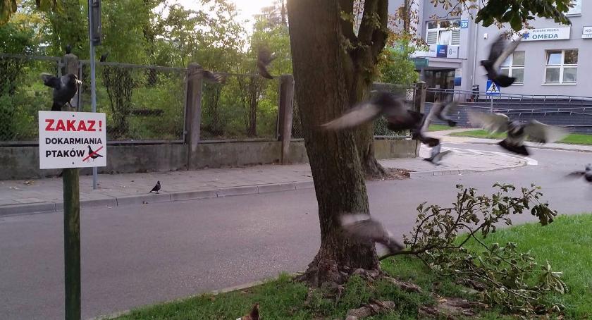 Części mieszkańców nie podoba się to, że ich sąsiedzi karmią gołębie lub inne ptaki na swoich balkonach lub parapetach. Bywa, że dokarmiają ptaki także i pod blokami. Gołębie potrafią mocno oszpecić przestrzeń publiczną, samochody i na dodatek roznoszą rozmaite choroby – w tym także żywe kleszcze. I dopóki nie robią tego w przestrzeni tak zwanej wspólnej, straż miejska jest bezradna. Na własnym parapecie, każdy może sobie wysypać ziarno i dokarmiać ptaki. Bo już ptaka, który zanieczyścił na przykład wspólny chodnik ukarać się przecież nie da.