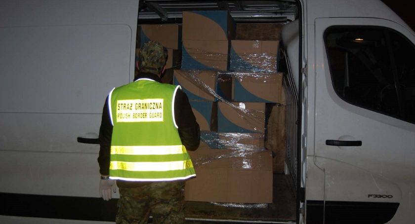 Mundurowi nabrali podejrzeń, że w samochodzie mogą znajdować się nielegalne wyroby tytoniowe. W wyniku przeszukania pojazdu znaleźli prawie 19,4 tys. paczek papierosów bez polskich znaków akcyzy o szacunkowej wartości 273 tys. zł. Papierosy znajdowały się w przedniej części przestrzeni ładunkowej pojazdu. 38-letni kierowca, obywatel Polski, przyznał się do znajdującej się w aucie kontrabandy.