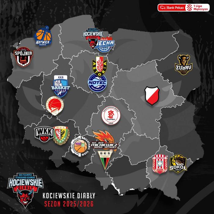 Na dowód, że Skiba ma rację podajemy grafikę jednej z pierwszoligowych ekip, gdzie na mapie Polski zaznaczone są lokalizacje zespołów pierwszoligowych, z którymi białostoczanom przyjdzie rywalizować.