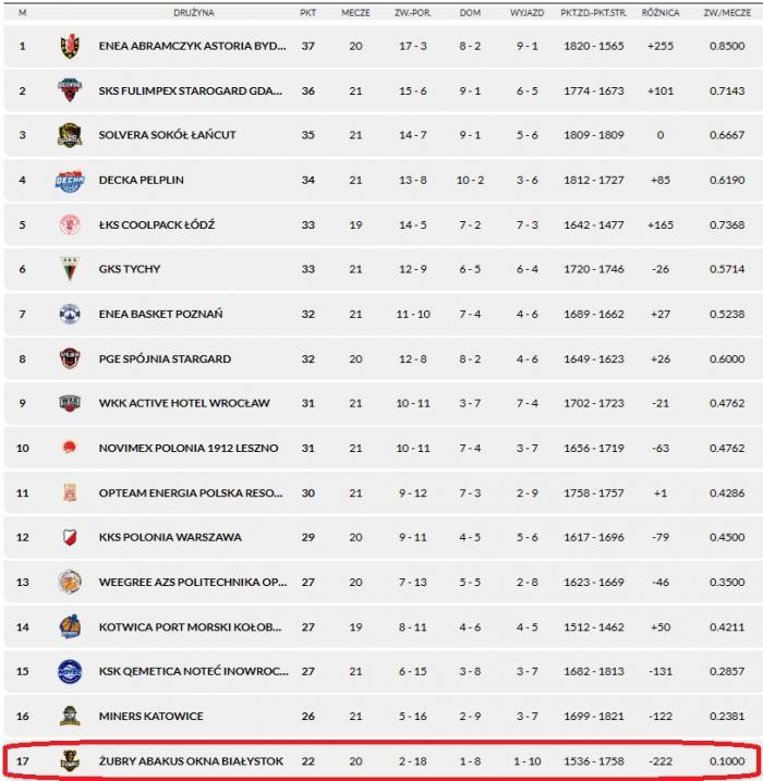 Żubry czeka zatem bardzo pracowity luty i teoretycznie są w stanie w trzech meczach znacznie zwiększyć swoje szanse na utrzymanie i poprawę miejsca w tabeli. Tyle, że grając tak jak przeciw wrocławianom będzie to tak trudne, że wręcz niemożliwie. Zawodnicy i Kamil Piechucki mają teraz kilka dni, aby odnaleźć sposób na pozbycie się "złej energii", o której mówił Szpakowski.