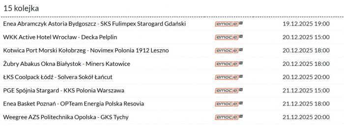 Wyniki 14. kolejki: GKS Tychy - ŁKS Coolpack Łódź 84:105, Novimex Polonia 1912 Leszno - PGE Spójnia Stargard 88:87, Decka Pelplin - Enea Basket Poznań 85:75, Solvera Sokół Łańcut - Kotwica Port Morski Kołobrzeg 87:78, Miners Katowice - Enea Abramczyk Astoria Bydgoszcz 65:84, KSK Qemetica Noteć Inowrocław - WKK Active Hotel Wrocław 65:84, SKS Fulimpex Starogard Gdański - Weegree AZS Politechnika Opolska 99:71.