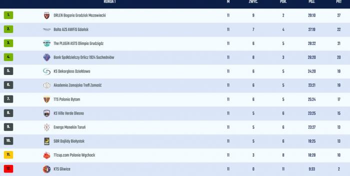 Wyniki 11. kolejki: KS Dekorglass Działdowo - KTS Gliwice 3:1, Energa Manekin Toruń - ORLEN Bogoria Grodzisk Mazowiecki 3:1, Balta AZS AWFiS Gdańsk - Akademia Zamojska Trefl Zamość 3:1, KS Villa Verde Olesno - SBR Dojlidy Białystok 1:3, Bank Spółdzielczy Orlicz 1924 Suchedniów - The PLUGiN ASTS Olimpia Grudziądz 2:3, The PLUGiN ASTS Olimpia Grudziądz - TTcup.com Polonia Wąchock 3:1.