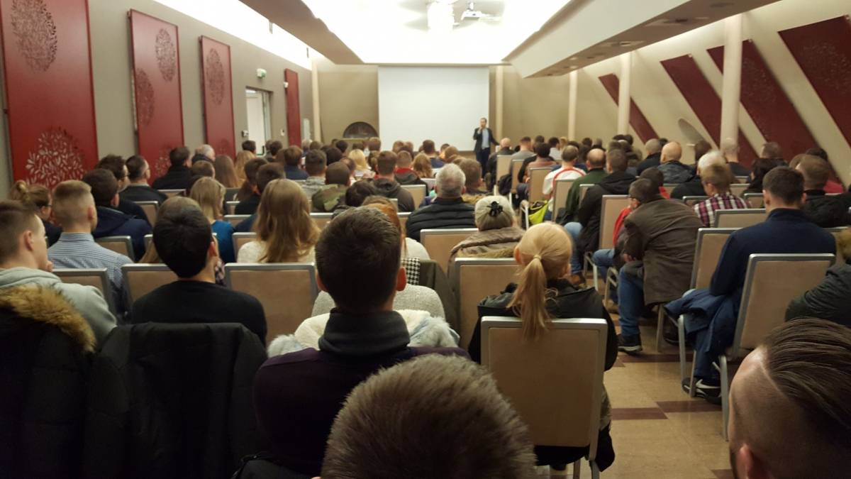 Pełna sala osób w różnym wieku i gorące dyskusje – tak wyglądał poniedziałkowy wieczór w Astorii. Ludzie przyszli na spotkanie z posłem Adamem Andruszkiewiczem, który przez pierwszą godzinę opowiadał o bieżącej polityce, następną godzinę odpowiadał na pytania – w tym również o tym, czy będzie się ubiegał o fotel prezydenta Białegostoku.